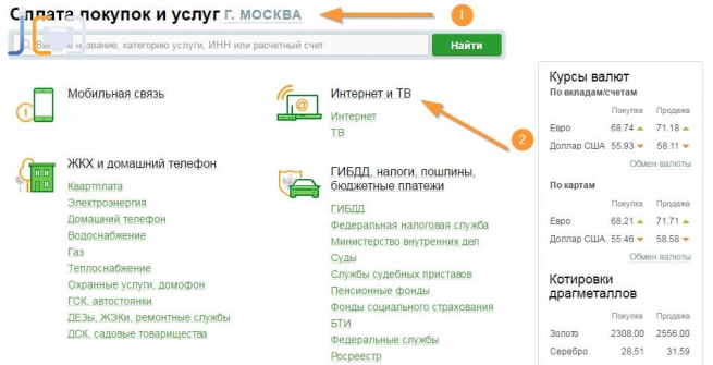 Если Вы предпочитаете оплачивать с компьютера, то следует зайти в меню “Переводы и платежи” в Личном кабинете на сайте Сбербанка. Затем выбираем вкладку “Интернет и ТВ”, а дальше получится с карты Сбербанк оплатить МГТС. Банк не берет комиссию за онлайн-переводы.