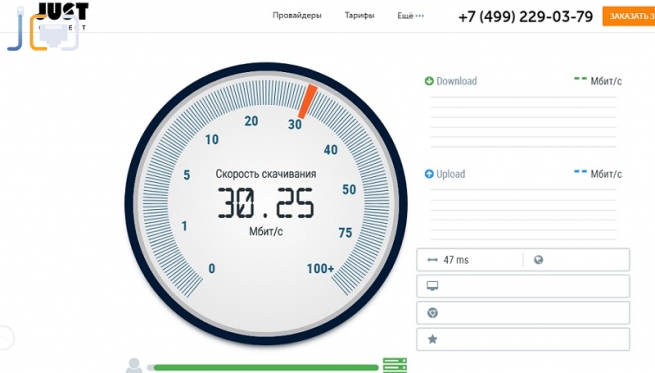Подключите к сети Wi-Fi компьютер или устройство, на котором планируете проверить скорость подключения. На сайте moskva.justconnect.ruв верхнем меню справа увидите кнопку “Тест скорости интернета”. Жмите и получите реальный показатель в данную минуту. Эта функция на сайте бесплатна, как и услуги по подбору московских провайдеров, выбору тарифного плана и консультация специалиста.